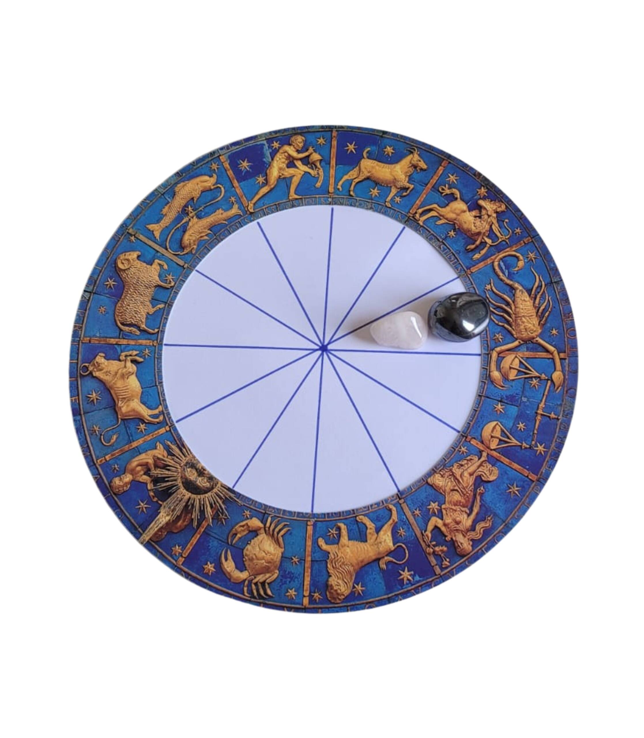 Acompanha 1 guia de utilização com a explicação de como montar a sua mandala astrológica e